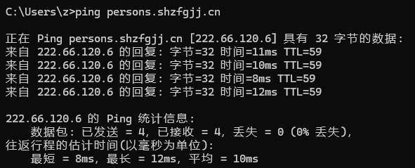 3) 输入:ping空格persons.shzfgjj.cn回车