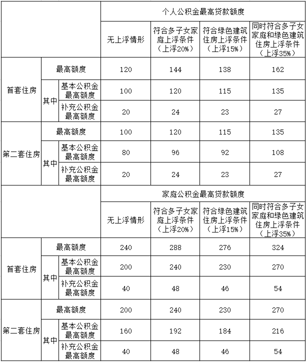 (3)缴交补充住房公积金的,个人最高贷款额度在上述额度基础上增加20万元,家庭最高贷款额度在上述额度基础上增加40万元;