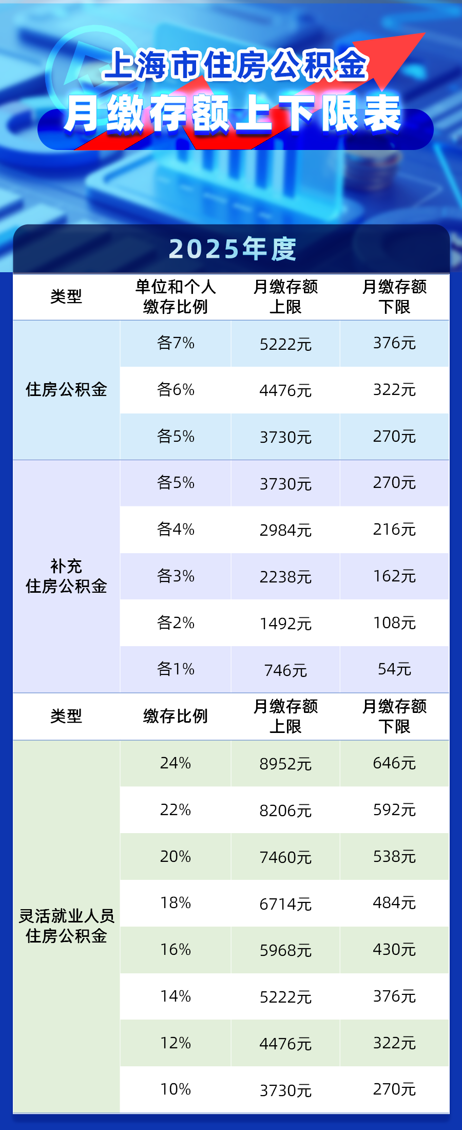 2025年度上海市住房公积金月缴存额上下限