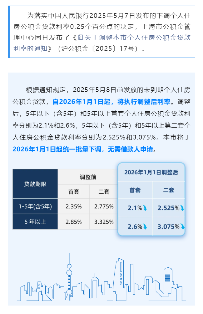 自2026年1月1日起,本市存量个人住房公积金贷款将按规定执行新利率